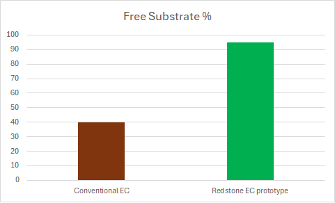 A highly hydrophobic substrate was first tested for non-specific binding to the concept material. Restone EC prototype had over 90 % free available substrate whereas other conventional Enzyme carriers on the market bound a large portion of the substrate non-specifically to their resin backbone leaving only 40 % of valuable substrate accessible for enzyme conversion to product.