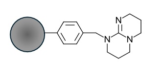 Surface chemistry of SABIT DVB-TBD, with covalently immobilized TBD. Loading ca 1 mmol/g.